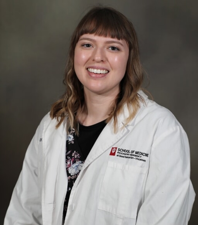 Erica is a native of Oakland City, Indiana. After completing her undergraduate at Indiana State in Terre Haute she went on to the University of Pikeville with a strong focus in rural training. Her desire to stay in Southern Indiana drew her to our program and she enjoys outdoor activities, animal crossing and her two cats. She has been active in church and community missions receiving an award for this distinction and speaks a bit more French than the average bear. So Bonjour Erica and Welcome to IUSM Vincennes.